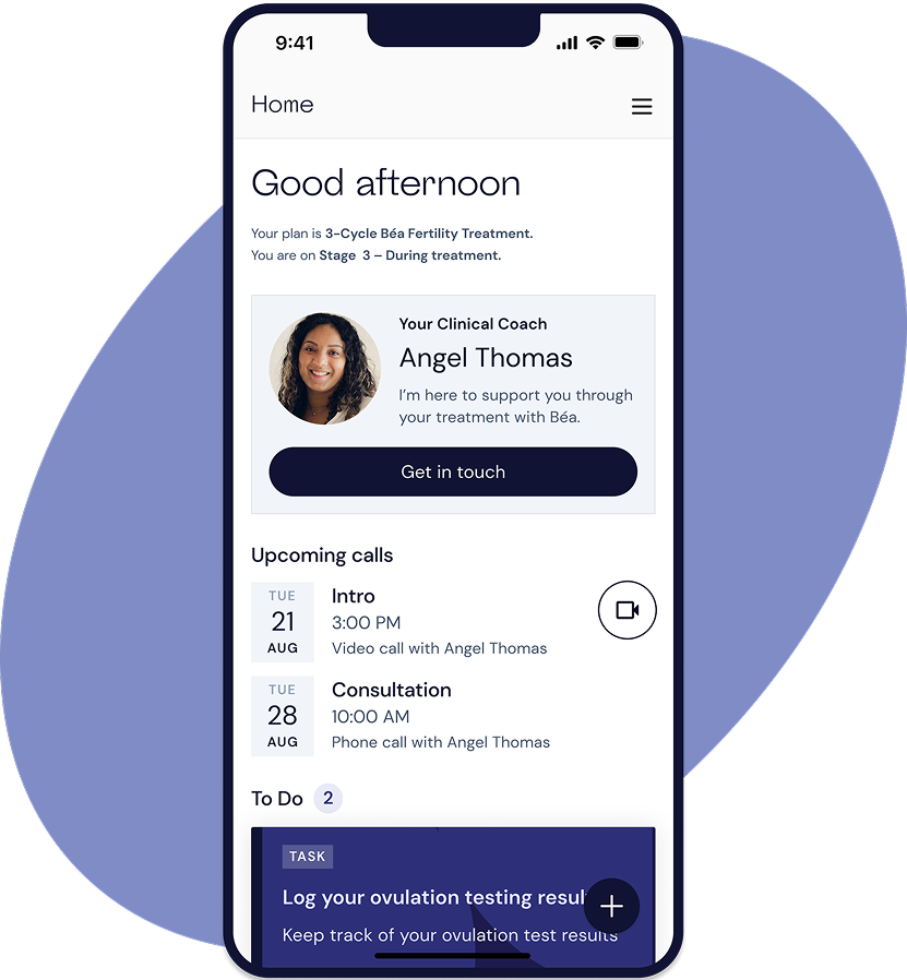 Get the reassurance of dedicated clinical support, the confidence of a proven treatment, and the control of starting fertility care on your timeline, when you're ready. Get started today by doing a free, 2-minute assessment to understand if Béa is the right fit for you.