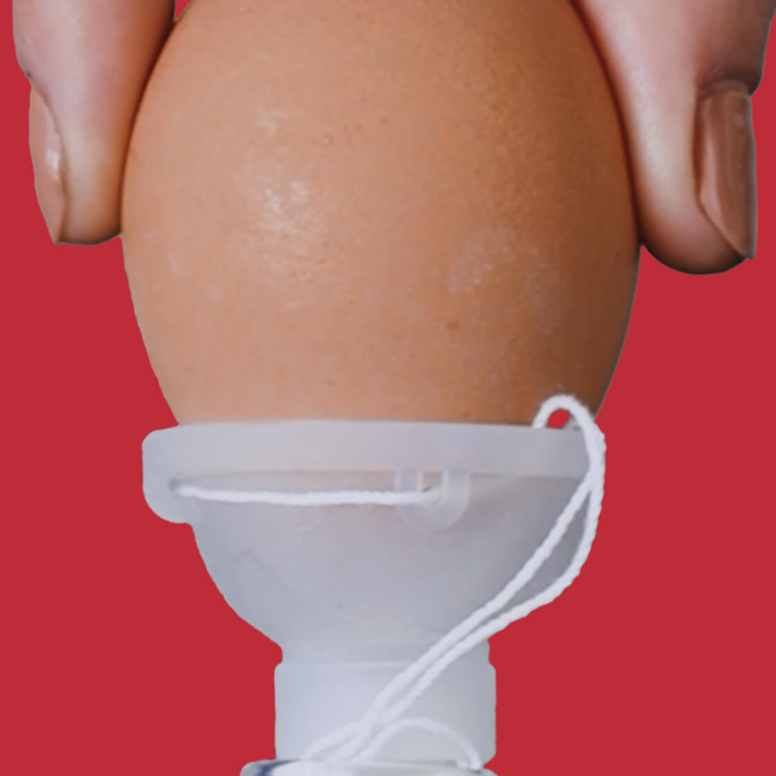 The cervical cap containing semen wraps around the cervix (demonstrated here using an egg), holding semen in the optimal place in the body, eliminating backflow and maximizing contact time with cervical mucus6.